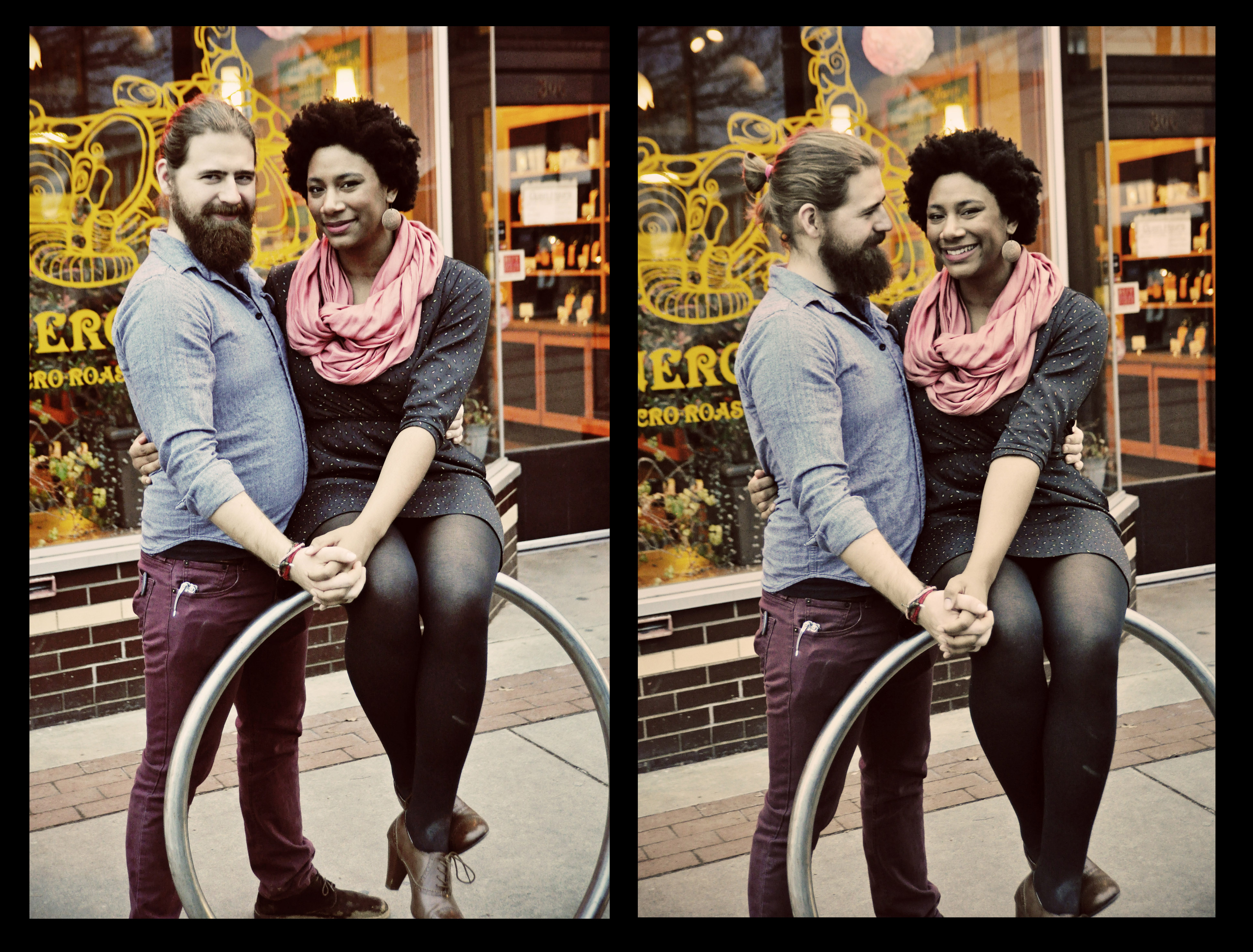I had the pleasure of being part of Curtis’ anniversary present for Janae. Janae was glad to run into me at Sunergos Coffeeshop a few weeks ago and then, once Curtis told her that I was there to take some engagement photos of them, well, her gladness turned into tears. Personally, a photo session would be the last thing I would want as a gift, but Janae was genuinely super-happy and proud of Curtis for thinking of such a surprise.
